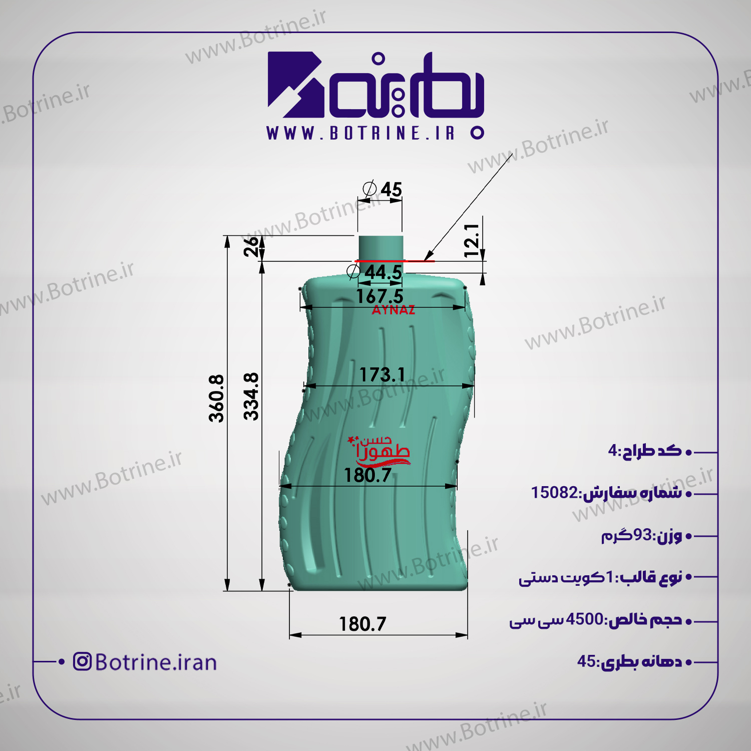 ویژگیهای قالب بطری 4500 سی سی دهانه 45 چیست؟
