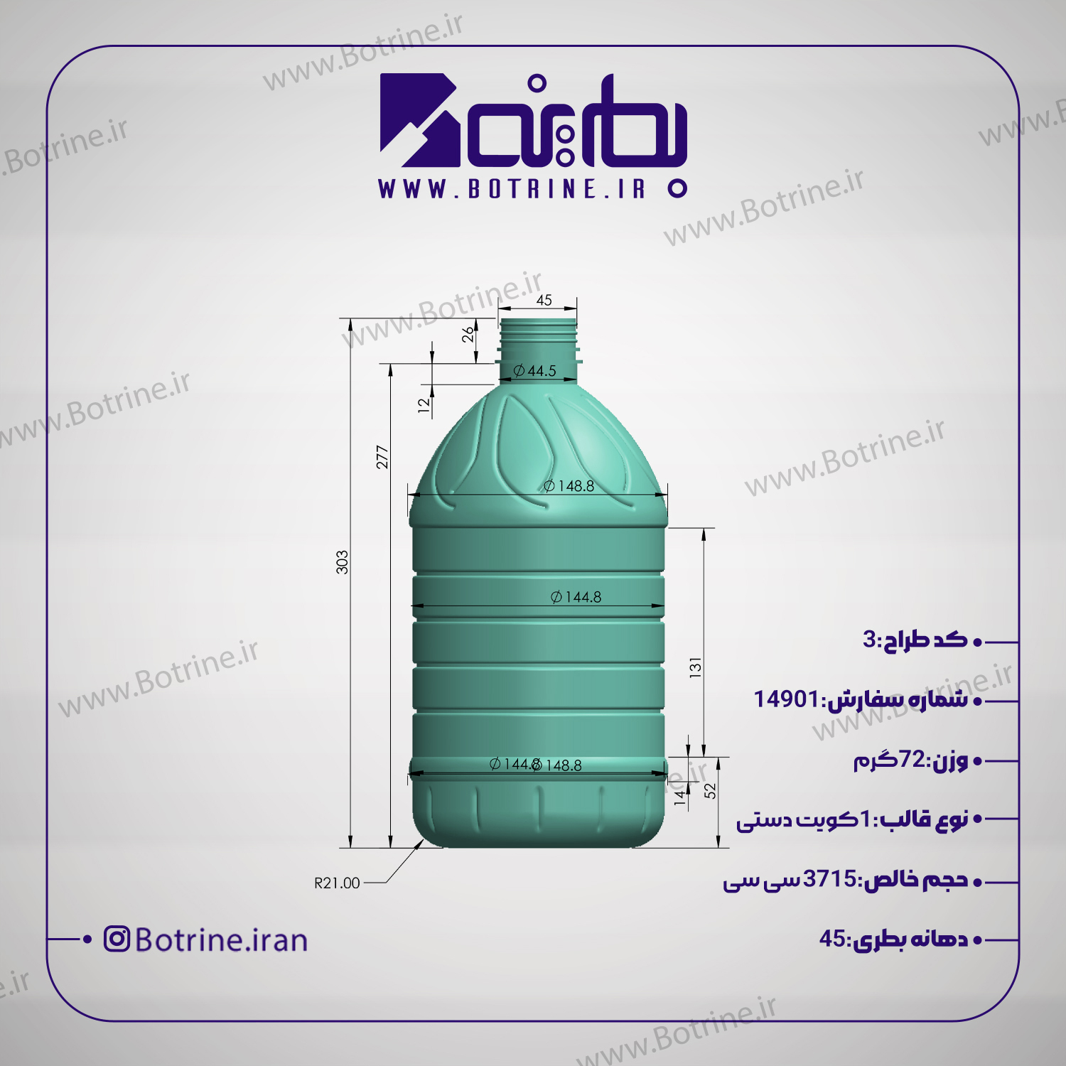 ویژگیهای قالب بطری 3700 سیسی دهانه 45 چیست؟